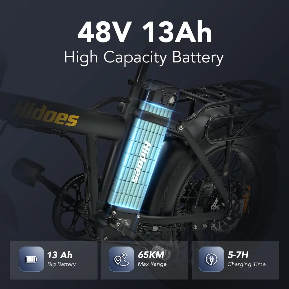 Powered by a durable 36V 10.4Ah lithium battery, the Hidoes B3 offers a practical riding range of approximately 18–28 km per charge, depending on terrain, rider weight, and assist level.