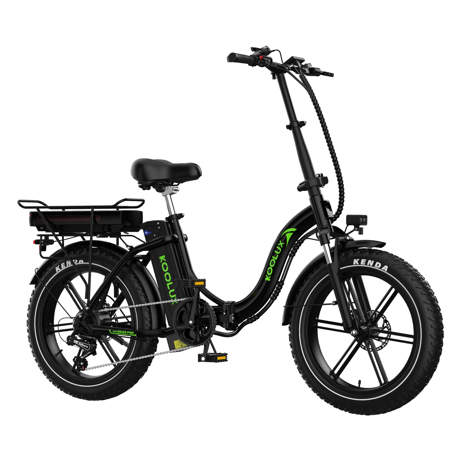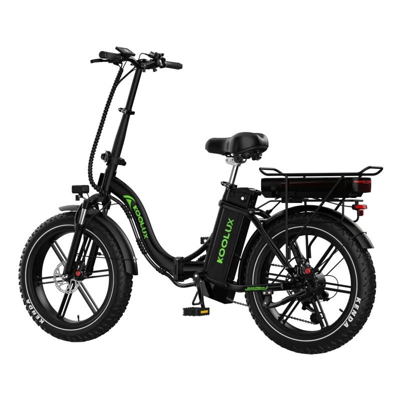 Engineered for extended range and rugged performance, the KOOLUX BK6S PRO folding electric bike redefines what a compact eBike can do. Built with a durable frame and foldable design, it’s perfect for both daily commutes and weekend getaways. What sets the BK6S PRO apart is its dual-battery setup—featuring a 48V 13Ah integrated frame battery and an additional 10.4Ah rack battery—offering an impressive range of up to 150 km on a single charge. Powered by a high-torque 750W motor and equipped with Shimano 7-speed gearing and front fork suspension, this fat tire electric bike delivers comfort, power, and adaptability on every terrain. Whether you’re cruising through the city or exploring off-road trails, the BK6S PRO is built to go the distance.