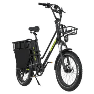 The 20-inch tyres offer excellent manoeuvrability and stability in city environments. This compact wheel size makes the bike easier to handle in traffic, tighter streets, and busy delivery routes, while maintaining comfort during longer rides.