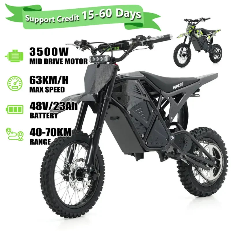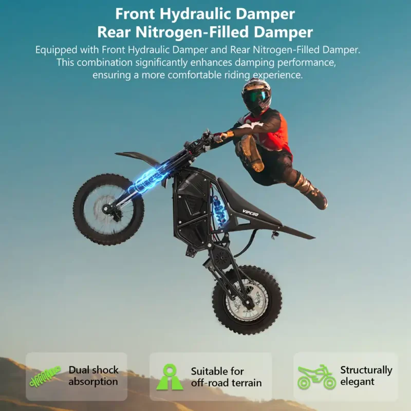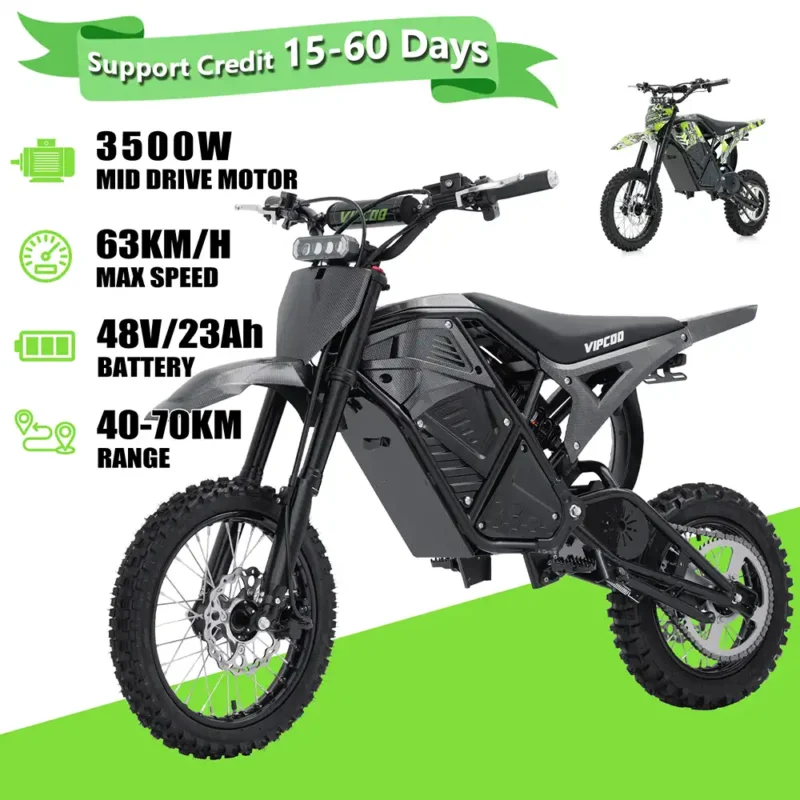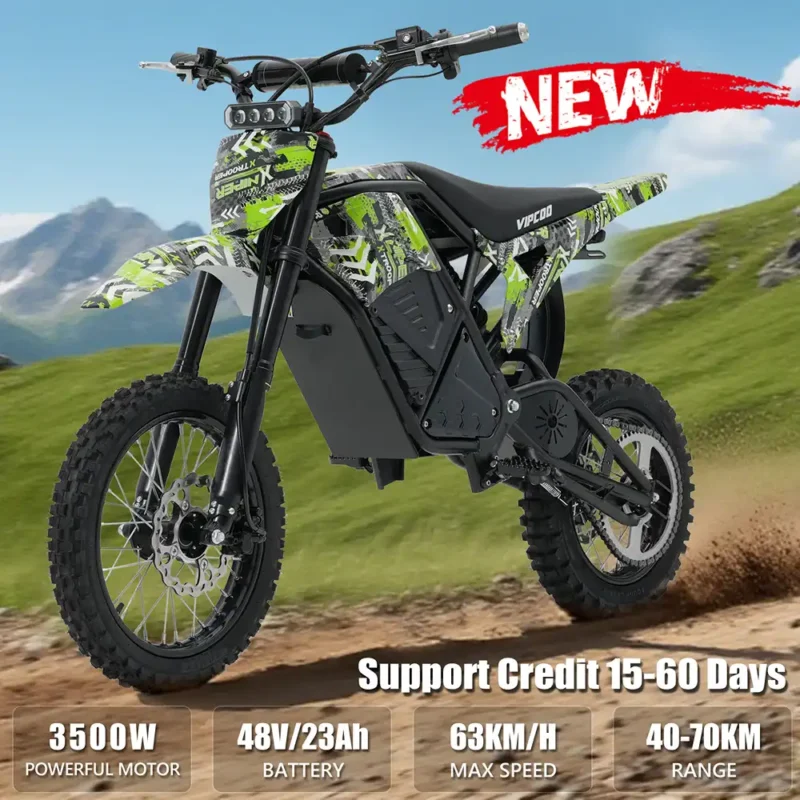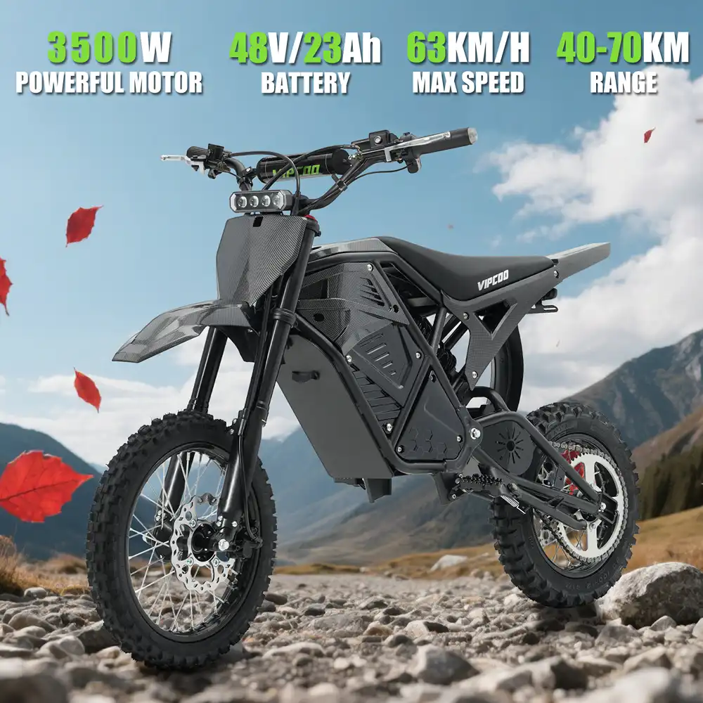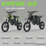 The VIPCOO H3 electric dirt bike is a powerful 3500W electric dirt bike built for off-road performance, trail riding, and adventure use. Designed as a high-torque electric motocross bike, it delivers fast acceleration, strong climbing ability, and stable control on uneven terrain.