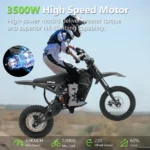 The VIPCOO H3 electric dirt bike is powered by a high-output 3500W motor, delivering strong torque and responsive acceleration for serious off-road riding. This powerful electric dirt bike is designed to handle dirt paths, uneven terrain, and trail routes with confidence.